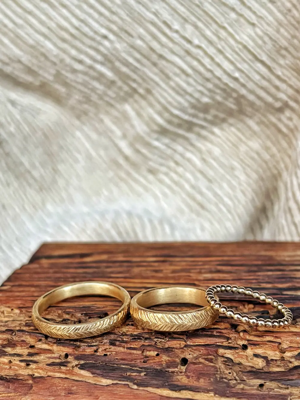 Wenn du dich für Trauringe von mir interessierst, kannst du gerne über den „mehr erfahren“ Button Kontakt zu mir aufnehmen, mich anrufen oder mir eine E-Mail schreiben. Wir vereinbaren einen Beratungstermin entweder vor Ort in meinem Atelier in Ansbach, Mittelfranken, per Video Call oder ich komme zu euch (das ist möglich in einem begrenzten Umkreis, sprecht mich hierzu einfach an). Ihr könnt viele verschiedene Designs von Trauringen anprobieren und testen, verschiedene Ring Breiten und Materialien ausprobieren und euch euer Traumring Paar aussuchen. Unter Berücksichtigung aller Faktoren (Maße, Material, Ringweite) erstelle ich euch nach der Beratung ein Angebot und lasse euch dieses zukommen. Wenn ihr die Ringe von mir anfertigen lassen möchtet, leistet ihr eine Anzahlung und ich fange mit der Anfertigung eurer ganz individuellen Ringe an.