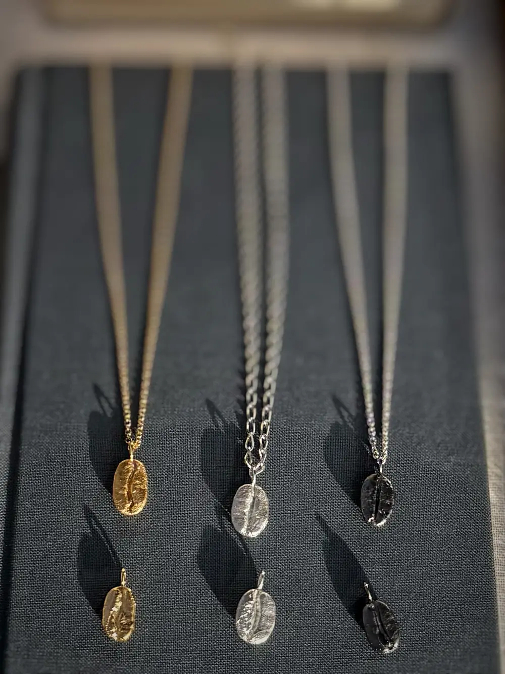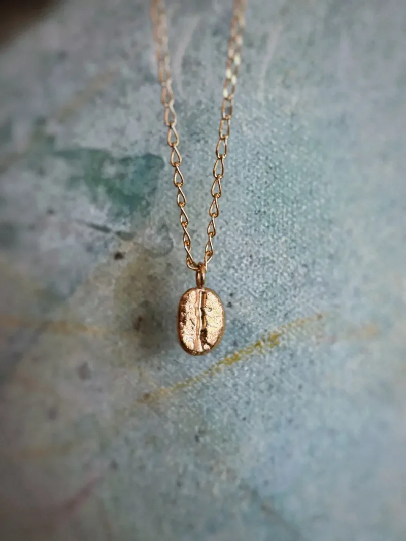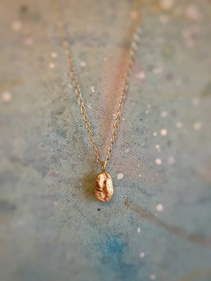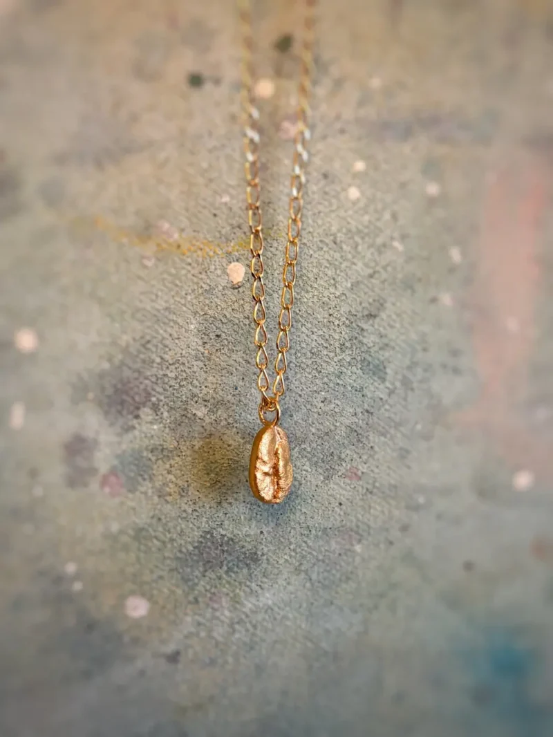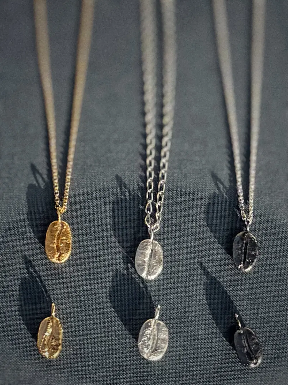 Ab jetzt gibt es die Kaffeebohne aus Silber auch vergoldet! Das sieht ganz ganz toll aus und wenn du lieber Goldschmuck trägst, ergänzt sie so perfekt deinen Look. Du kannst nun also zwischen Silber, Silber mit schwarzer Rille, ganz schwarz oder der vergoldeten Bohne wählen. Wie das aussieht, kannst du auf den Produktfotos sehen.