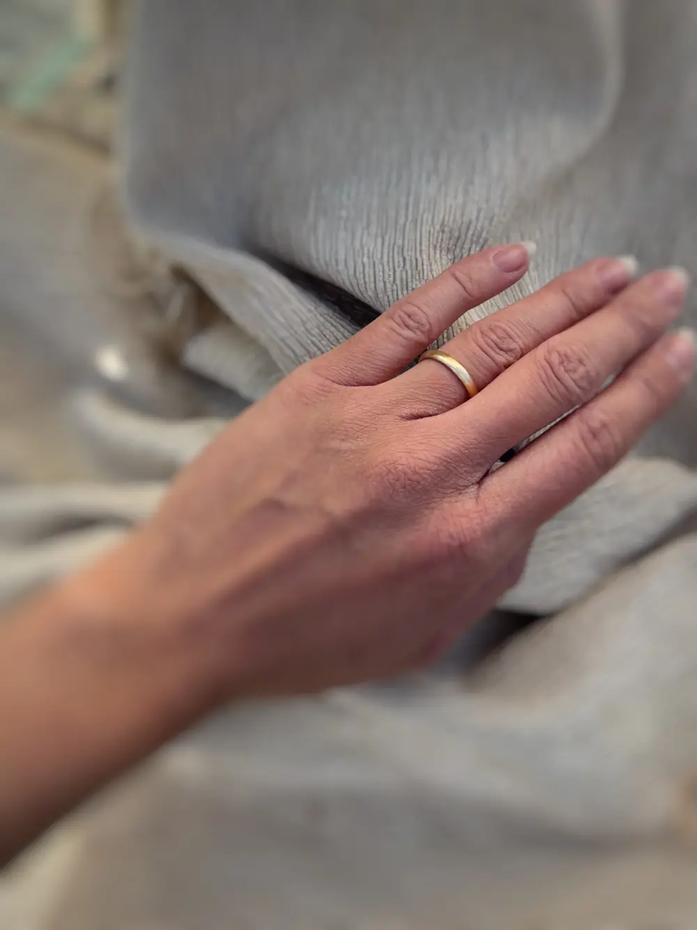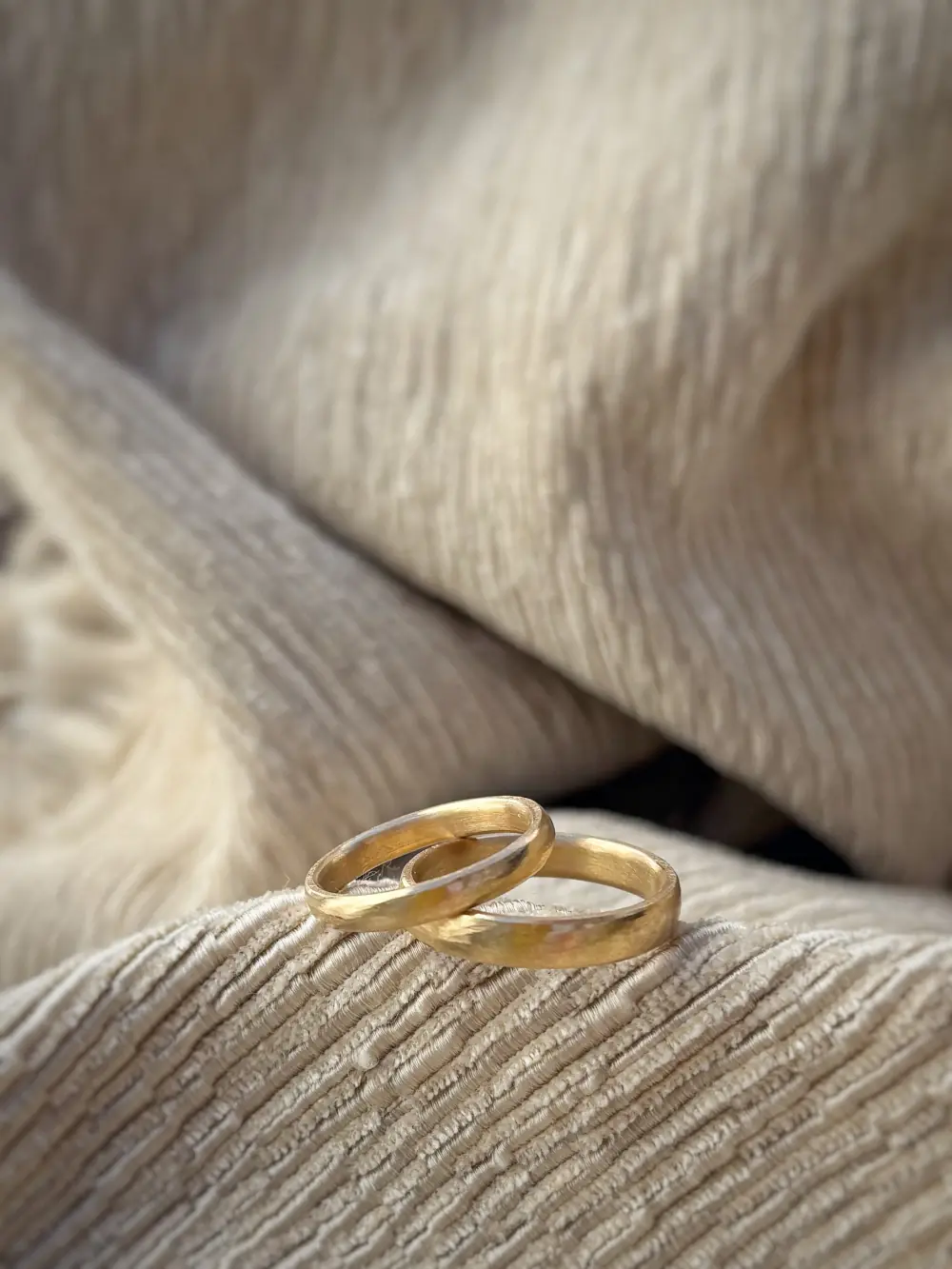Wenn du dich für Trauringe von mir interessierst, kannst du gerne über den „mehr erfahren“ Button Kontakt zu mir aufnehmen, mich anrufen oder mir eine E-Mail schreiben. Wir vereinbaren einen Beratungstermin entweder vor Ort in meinem Atelier in Ansbach, Mittelfranken, per Video Call oder ich komme zu euch (das ist möglich in einem begrenzten Umkreis, sprecht mich hierzu einfach an). Ihr könnt viele verschiedene Designs von Trauringen anprobieren und testen, verschiedene Ring Breiten und Materialien ausprobieren und euch euer Traumring Paar aussuchen. Unter Berücksichtigung aller Faktoren (Maße, Material, Ringweite) erstelle ich euch nach der Beratung ein Angebot und lasse euch dieses zukommen. Wenn ihr die Ringe von mir anfertigen lassen möchtet, leistet ihr eine Anzahlung und ich fange mit der Anfertigung eurer ganz individuellen Ringe an.