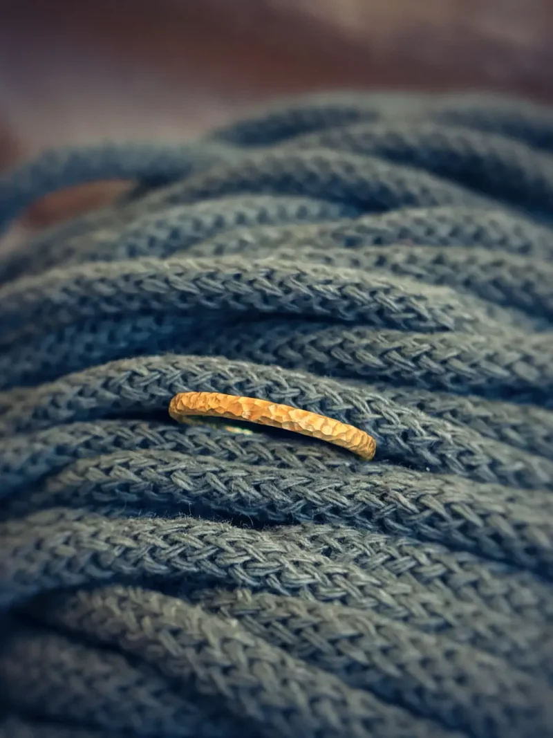 Ring Luna ist ein toller zarter, goldener Alltagsring mit Mondoberfläche. Diese Oberfläche findest du auch bei den Trauringen. Sie wird mit kleinen Fräsern hergestellt und es ist ziemlich aufwändig und zeitintensiv jede einzelne Mond Kuhle einzuarbeiten. Das Ergebnis lohnt sich aber oder? Die Mondoberfläche ist richtig toll. Sie spiegelt das Licht wieder und funkelt als wären da lauter kleine Steine eingefasst.
