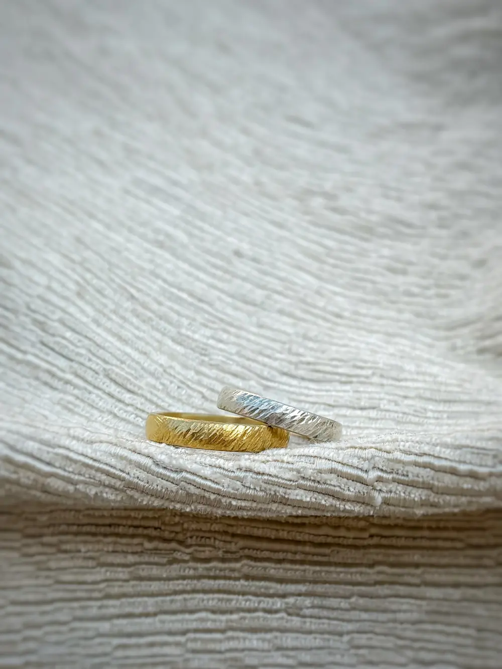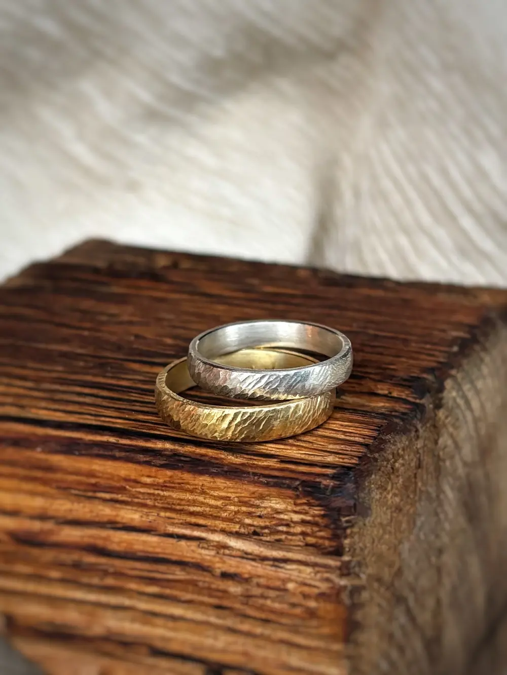 Trauringe mit Sommerregen Struktur sind robust, klassisch und mit der tollen, handwerklich geschmiedeten Optik ein echter Hingucker.